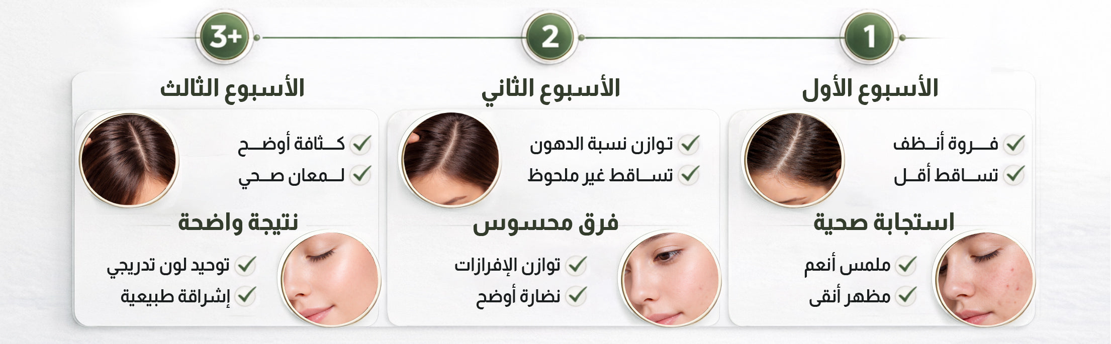 النتائج تدريجية وتختلف حسب الحالة، لكن أغلب المستخدمين يلاحظون تحسنًا خلال الأسابيع الأولى مع الالتزام المنتظم بالبروتوكول.